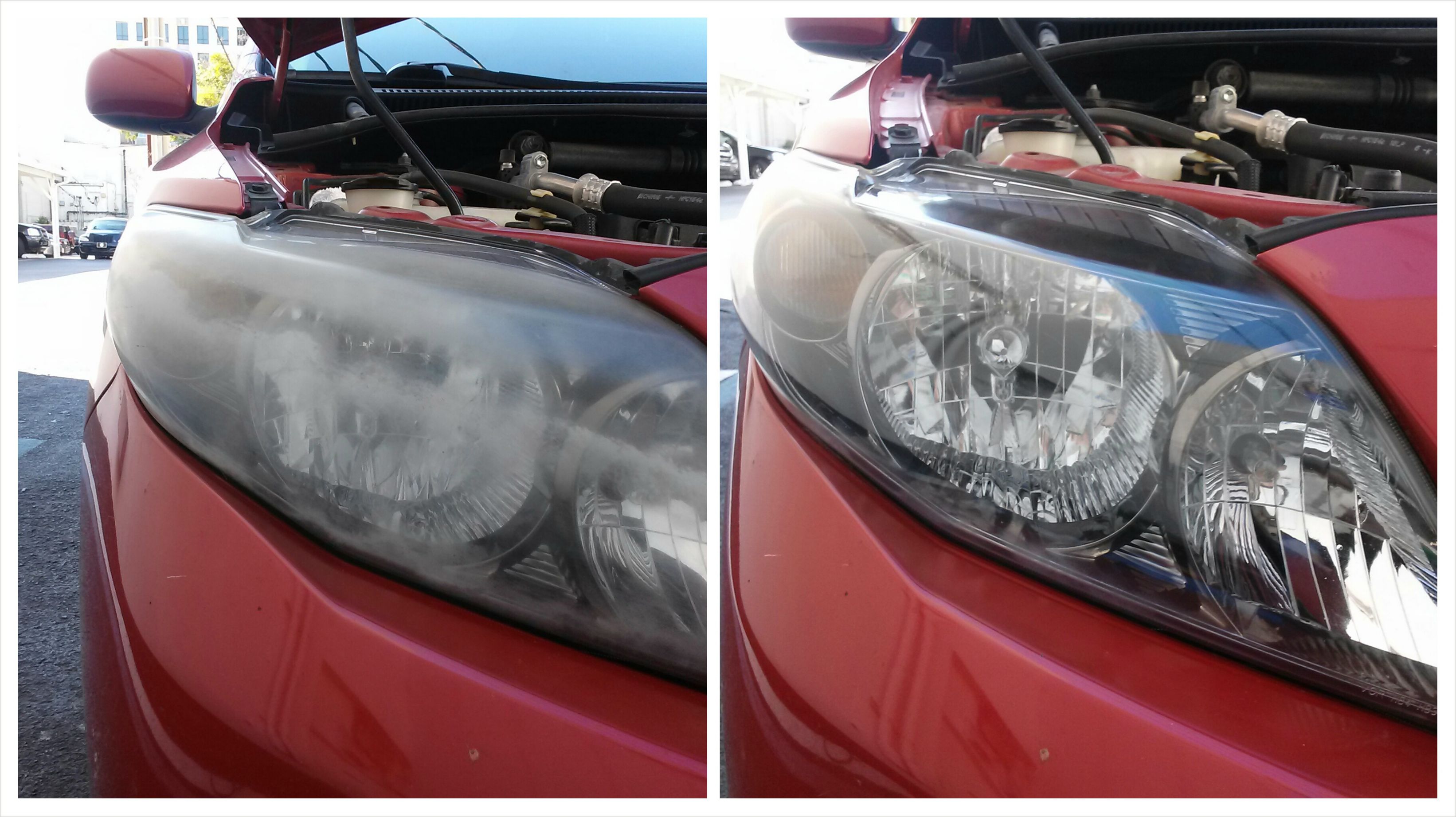 Doffe mat uitgeslagen koplamen weer als nieuw, door onze speciale polijst techniek.
